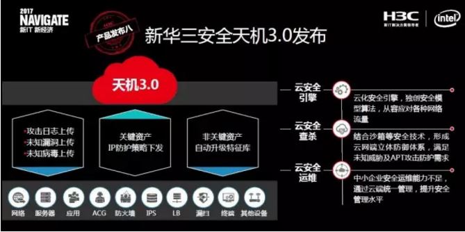 作為本此峰會(huì)期間的重頭戲,新華三重磅發(fā)布了九款重量級(jí)產(chǎn)品。其中,華三天機(jī)3.0作為新華三安全產(chǎn)品的代表,全新亮相。